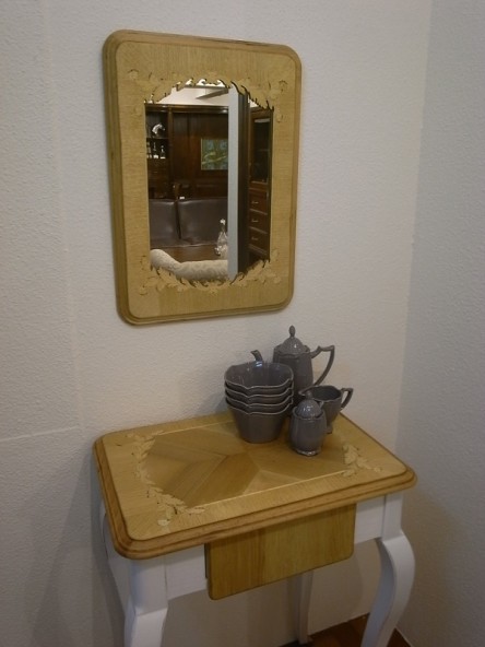 コンソール(MM591)の天板と大きさや象嵌細工は一緒なので、セットでお使いいただけます。