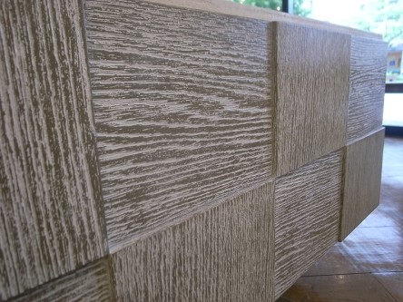 凹凸のある市松模様のような扉のデザイン、面材はオーク材を使用しています。