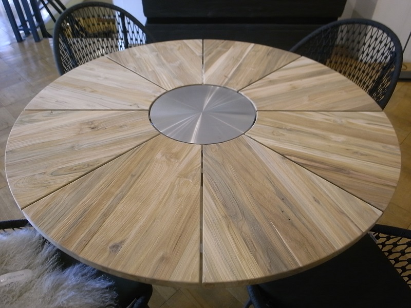 テーブル(NEXOR)の天板は、インドネシア産のリサイクルチークを使用しています。