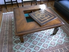 中央部分に象嵌でチェス盤の模様があり、隠し収納と裏も別の柄が描かれています。