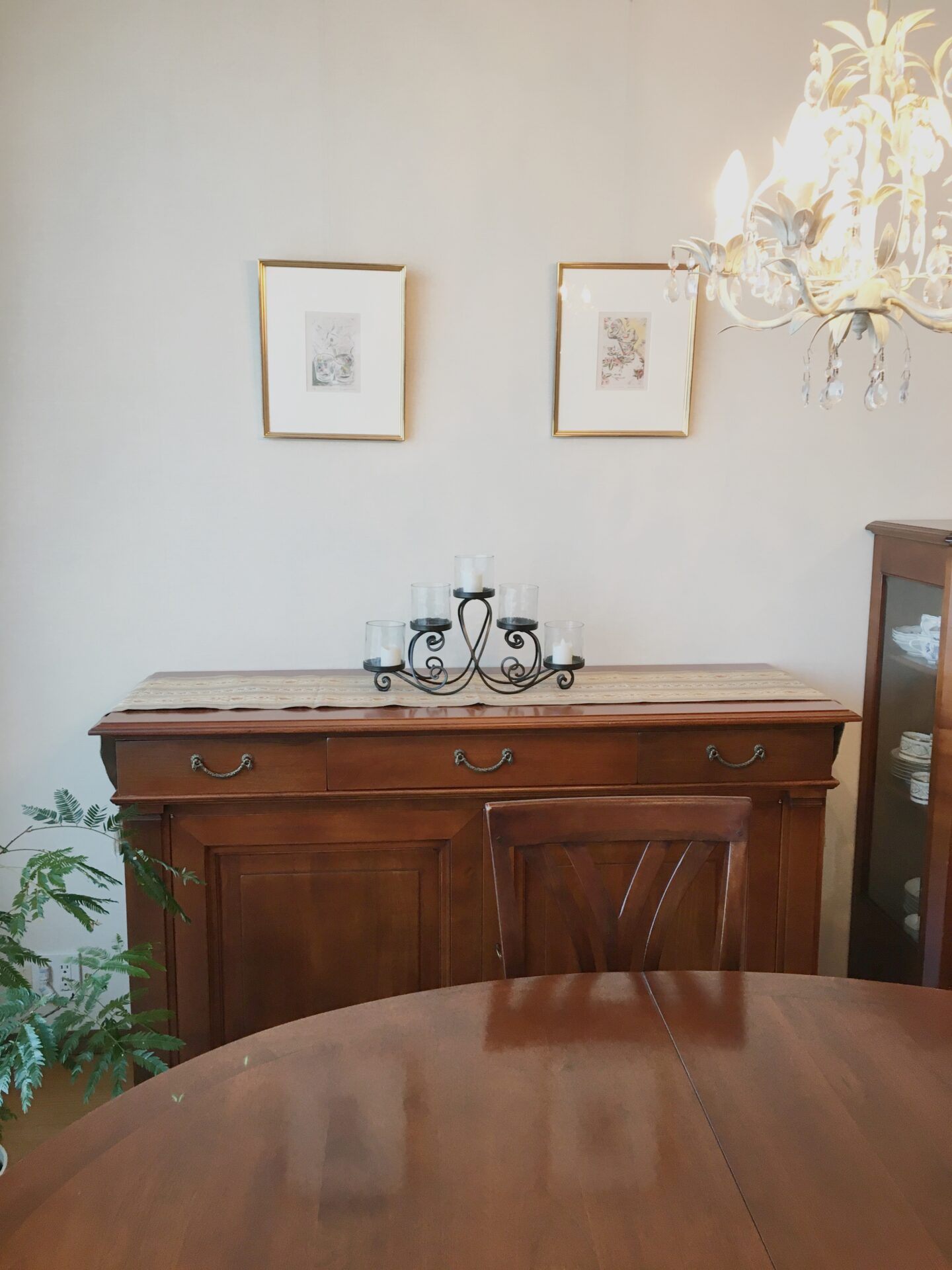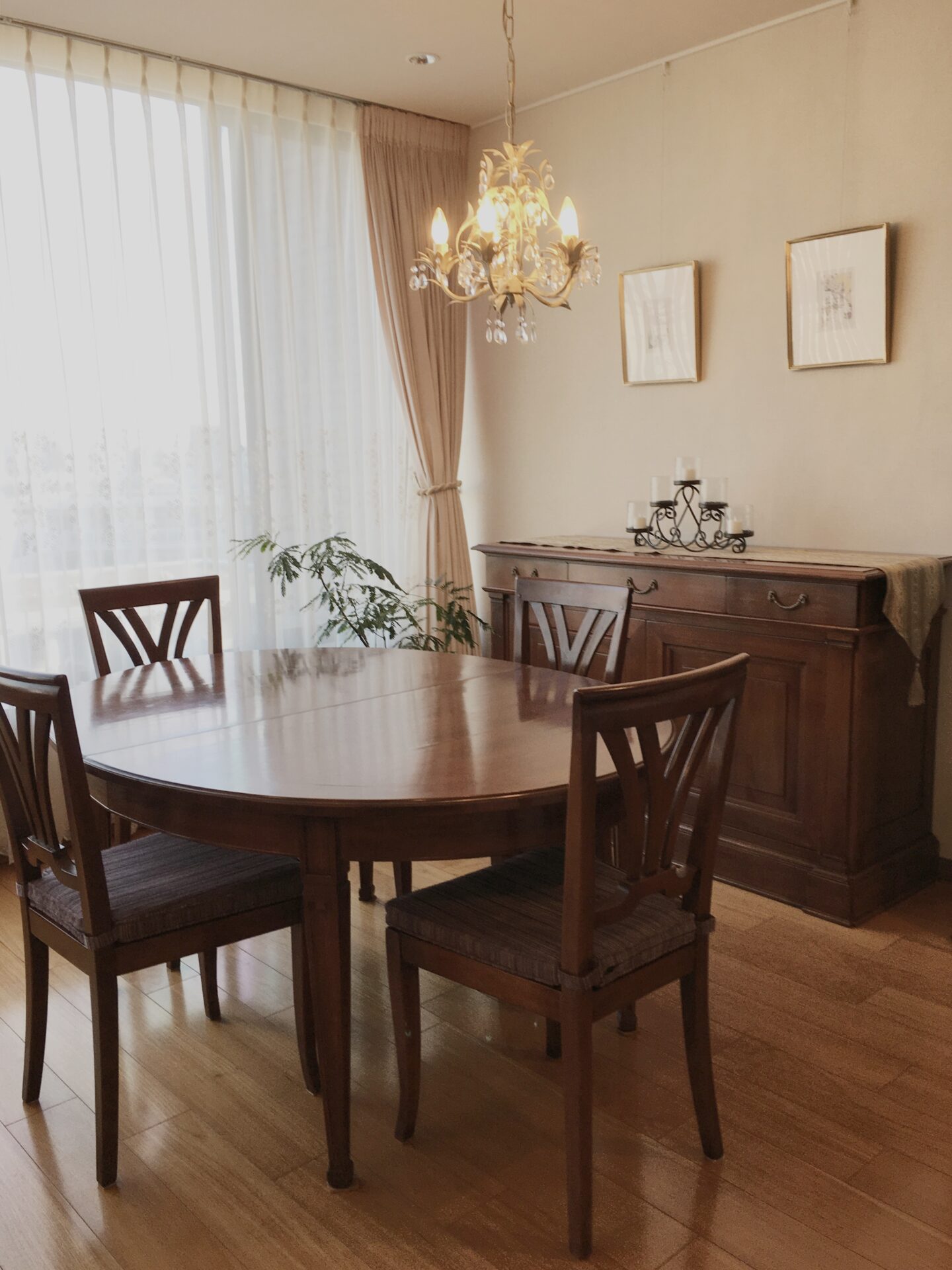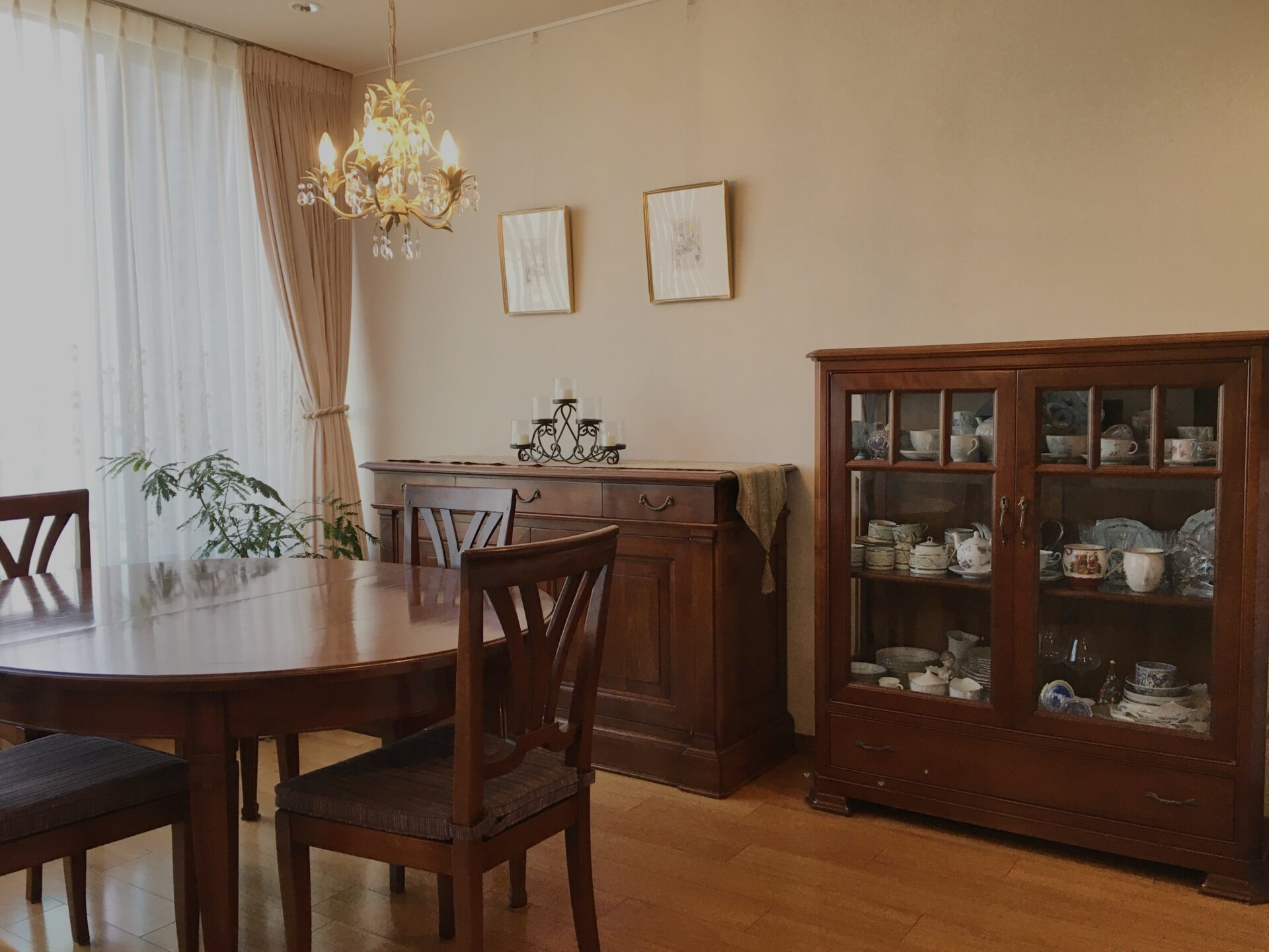 お客様は、ご結婚当時にお求めになったダイニングセットとガラスキャビネットをお持ちですが