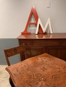 クラッシック・エレガントな印象の家具をあえてPierre Chiaro仕上げにしたのもマルケッティらしさですね。