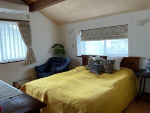 大きな寝室にシングルサイズを二台揃えてコーディネートできるのが魅力です。