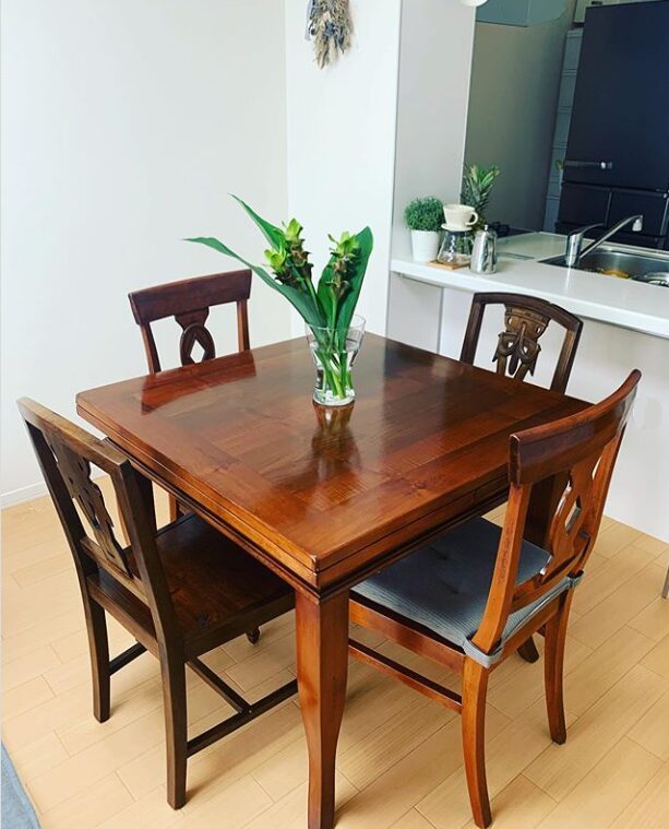 こちらは以前家具をお譲り下さったお客様のお写真。90㎝角のテーブルに4脚