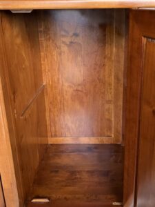 開き扉の中には棚板が1枚ずつ。(高さ約30㎝)桟の上にのっていますので、棚板を外せば背の高い物も