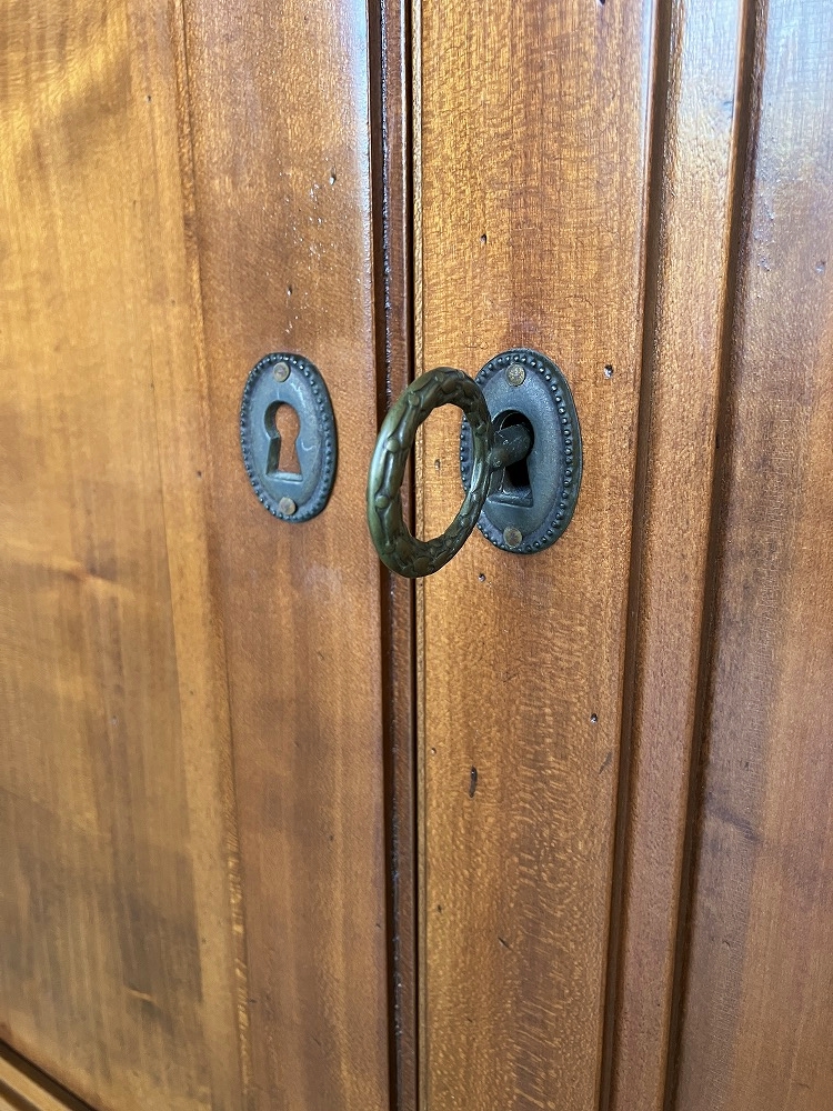 真鍮の鍵は取手と兼用で、大切な物の保管には鍵をかけることもできます。