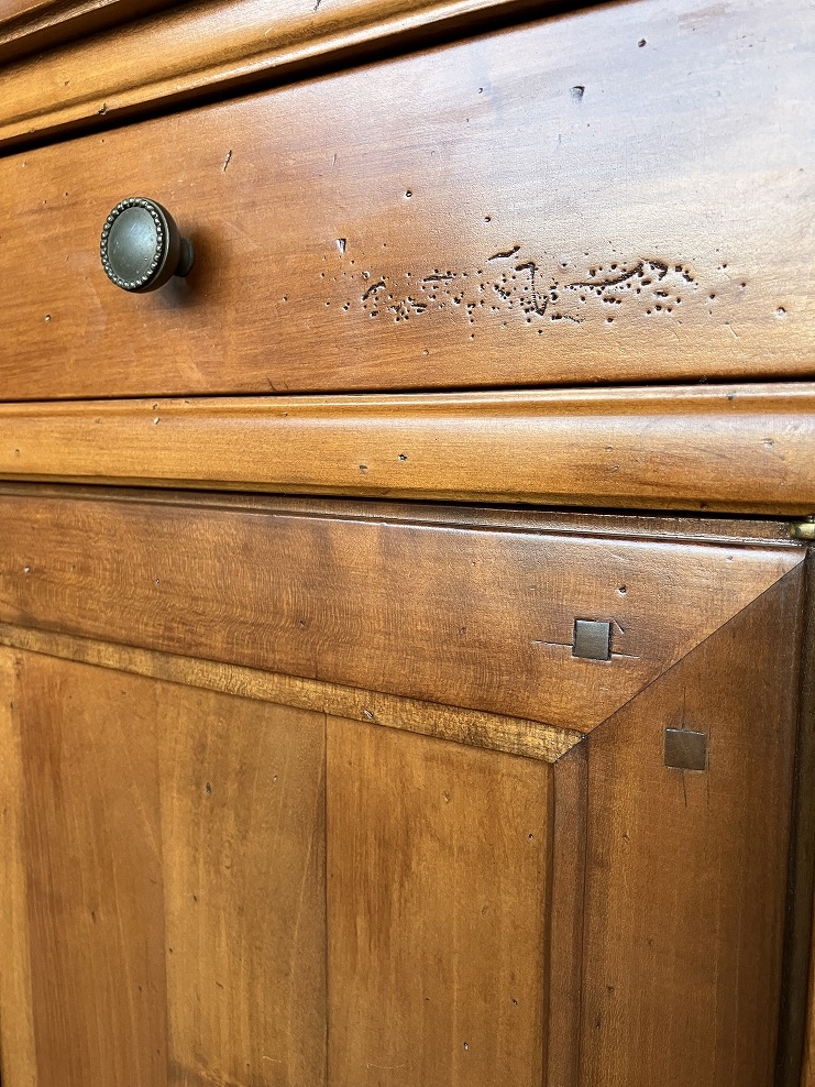 経年による引っ掻き傷や小さい打痕がありますが輪染みなど塗装のダメージはありません。