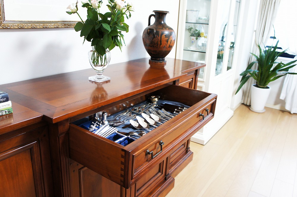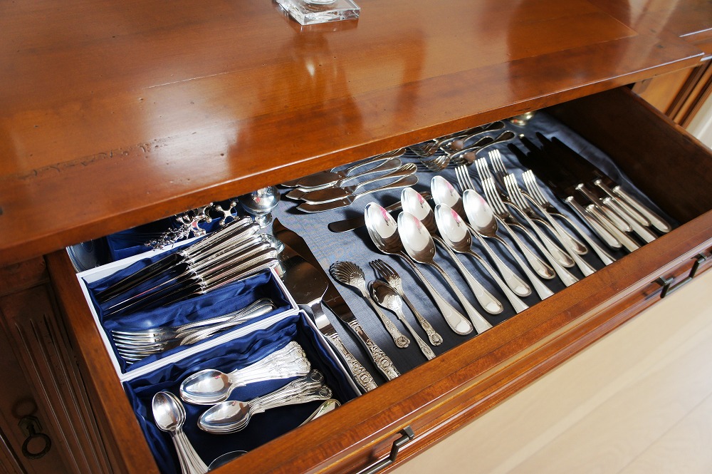 大容量の引出しには以前はキッチンに収納されていたコレクションのカトラリーを収納。